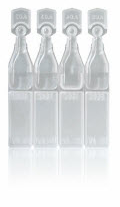 Frascos em vidro soprado selados por chama e esterilizados pelo calor