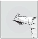 Massaje cuidadosamente as pálpebras com pequenos movimentos circulares, removendo com suavidade quaisquer crostas, películas ou secreções.