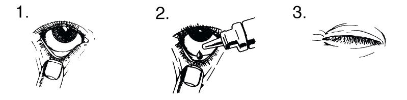 - Instilar uma gota de colírio no saco conjuntival inferior, puxando a pálpebra ligeiramente para baixo e olhando para cima.